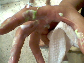 look tis hand .. full of ice-cream .. its "green apple" flavour ..