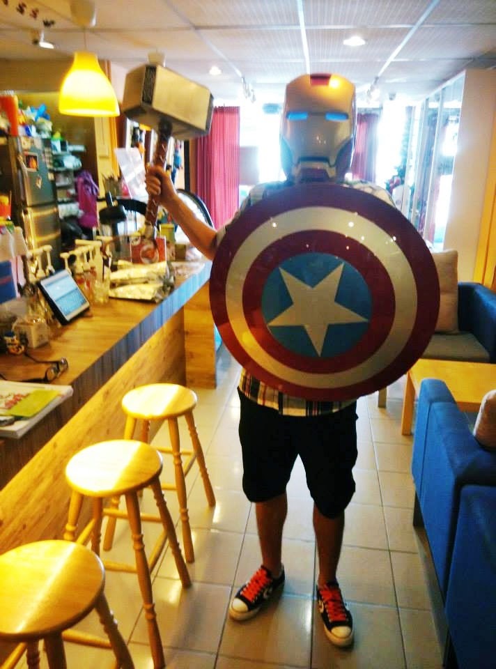 What my friend holding is the avenger collection of the owner storing in his store room. Talk to him, you get to know more about this cafe and the whole toy set of his.